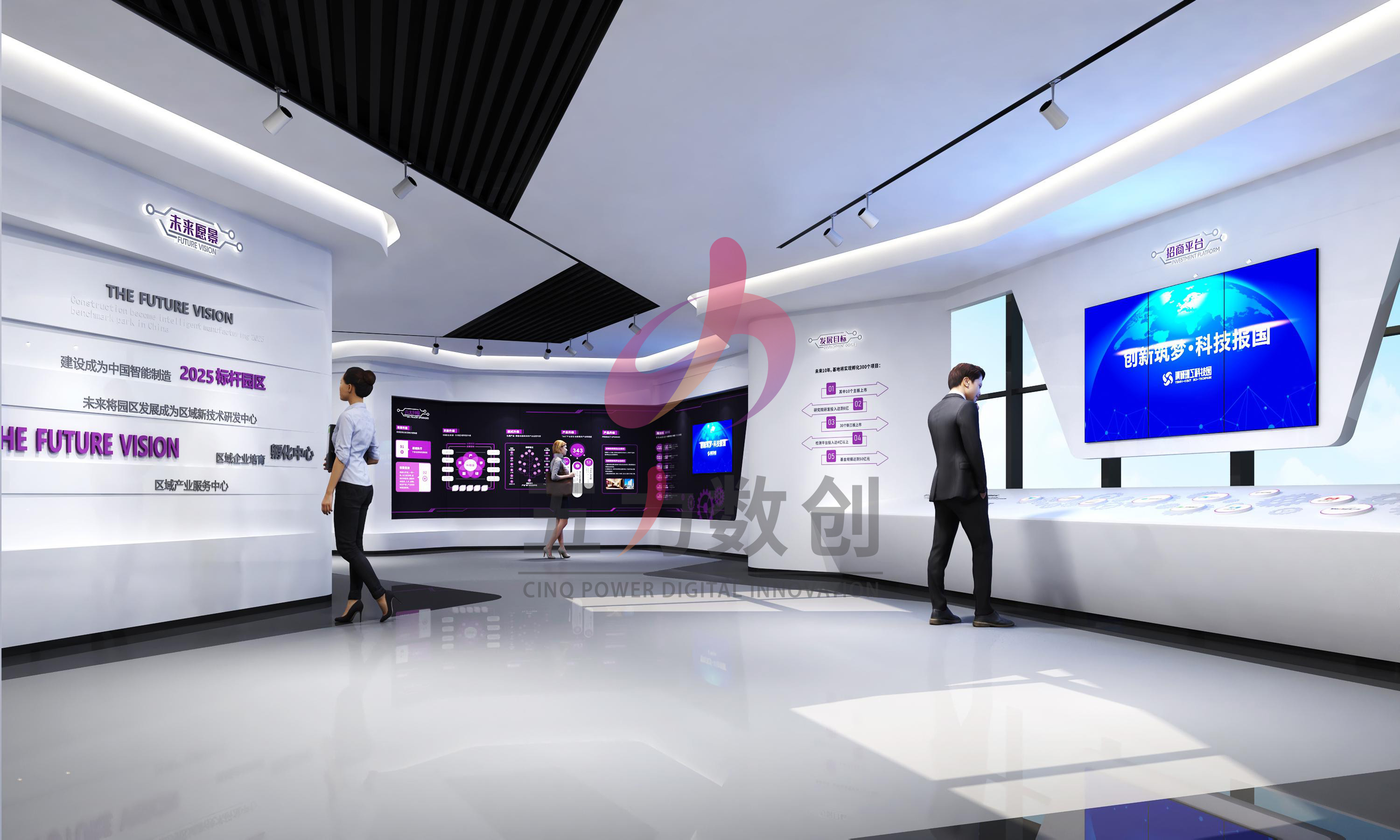 項目介紹:清研理工科技園展廳布展了繪.藍圖畢現(xiàn)、起.智從新來、勢.得天獨厚、擎.產(chǎn)業(yè)集聚四個展區(qū)區(qū)域,分別展示了園區(qū)的總體規(guī)劃戰(zhàn)略布局、清研體系概況和發(fā)展歷程、幾大產(chǎn)業(yè)成果和展望,并運用數(shù)字沙盤、弧幕、大屏、互動多媒體等多媒體高科技展項賦予展廳科技感、未來感和智慧感,致力于打造中國制造2025標桿智慧園區(qū),吸引優(yōu)質(zhì)企業(yè)入駐,助力運營者招商引資,展望未來。